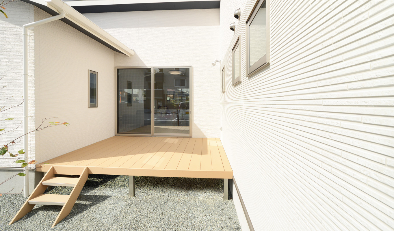 さらに、テラスを中心としたコの字型の間取りをご提案。家族が集うリビングは、プライバシーに配慮しながら優しい光と風に包まれ、明るく開放的な空間を実現しています。