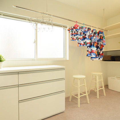ランドリースペースや随所に設けた豊富な収納スペースなど、家事ラクを叶えるアイデアいっぱいの住まいです。